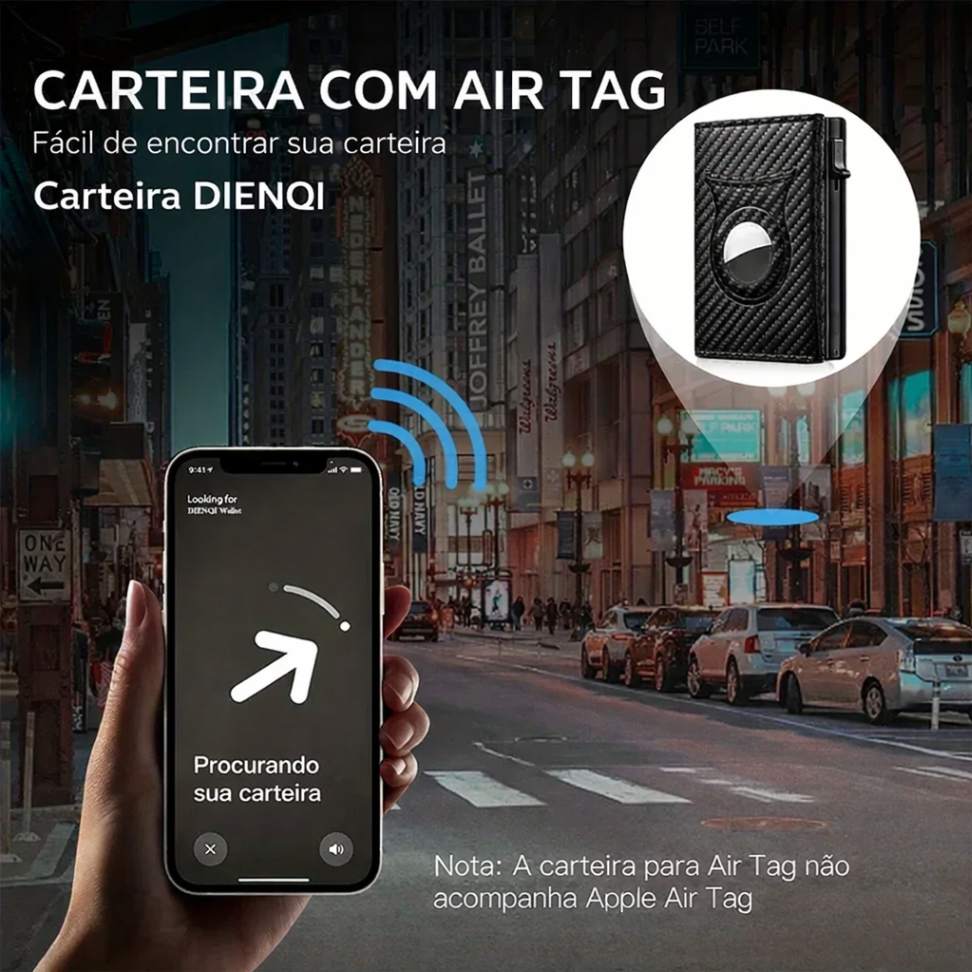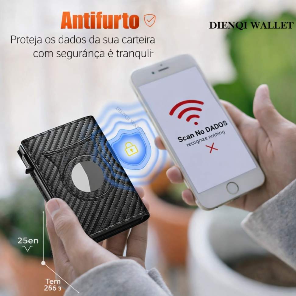 A Carteira DIENQI com rasteador de objetos, foi desenvolvida para quem busca segurança, praticidade e design moderno em um único acessório. Compacta e elegante, ela permite organizar seus cartões, dinheiro e moedas sem volume excessivo no bolso.