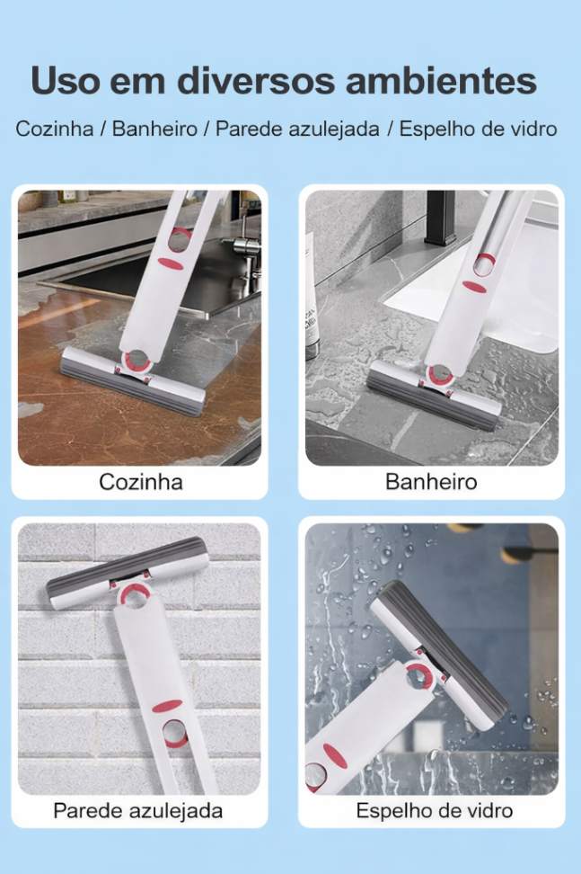 Dupla utilização úmida e seca:O design de dupla utilização do nosso esfregão, design push-pull tipo anel, dobrado ao meio para extrusão forte de 180 graus, lavagem e desidratação integradas, puxar com uma mão e espremer água.Adequado para todos os tipos de superfícies, incluindo tampos de mesa, vidros de janelas, pisos, cozinhas, salas de estar e banheiros